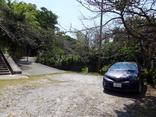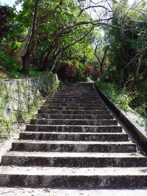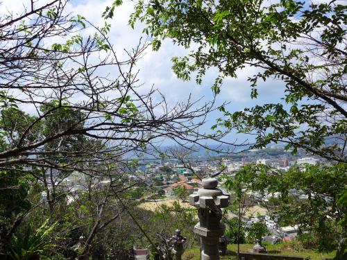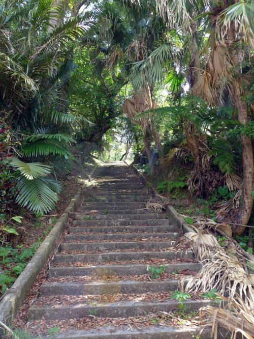 未舗装の駐車場から、古い石畳を登った先にある名護城(なんぐすく)跡は、鬱蒼と茂る南国の木々に囲まれた広場で、不気味です。