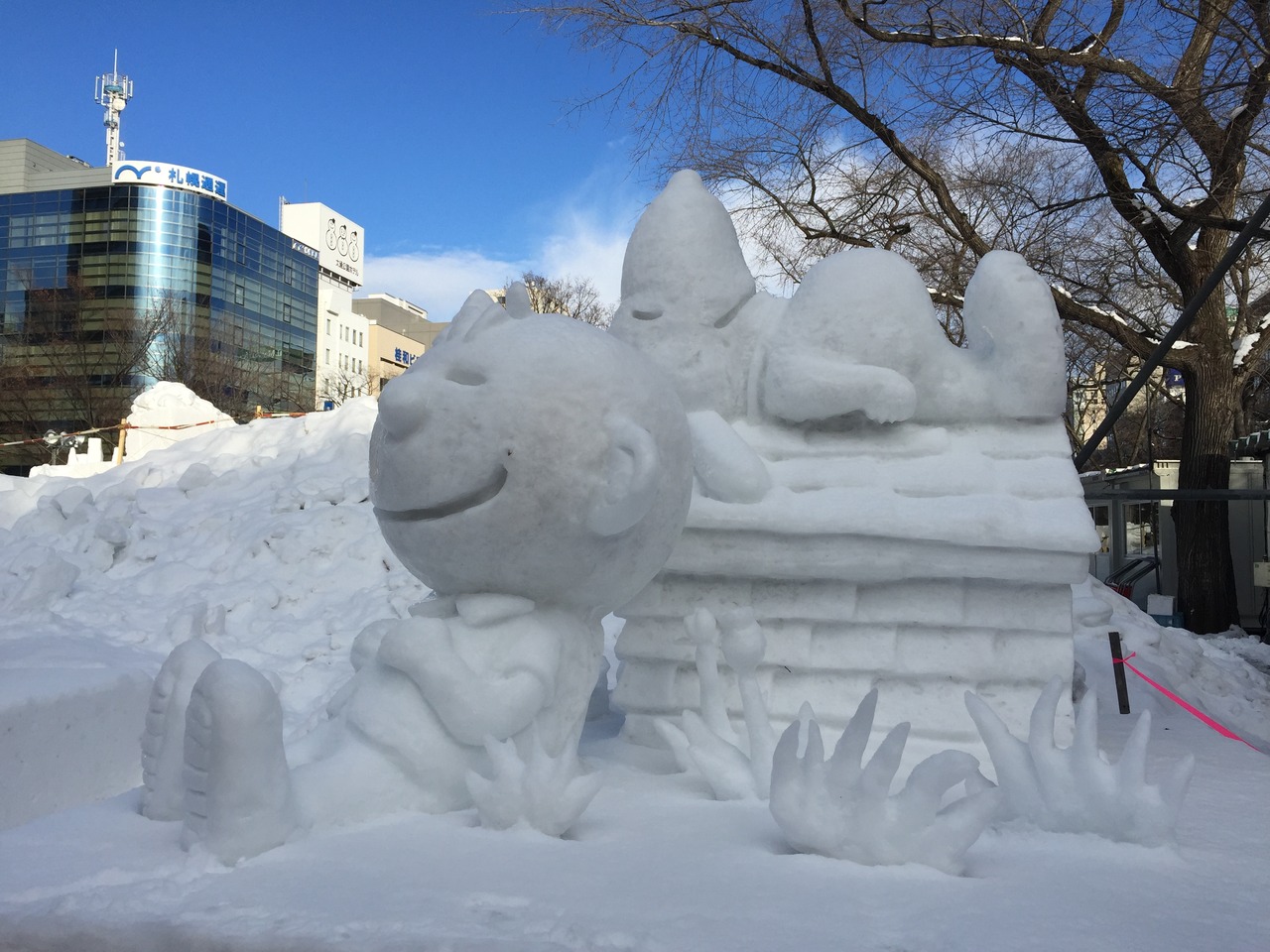 念願の雪まつりにJoin。1丁目ー11丁目まで、雪の祭典でした。10丁目では、吉本劇場があり、とにかく明るい安村さんが芸をしていました。「安心してください。はいています」と言っていましたが、気温は−5℃。相当寒そうでした。雪の祭典ですが、ずーっと食べ物やさんが、店を出しており、食の祭典でもあります。食べ歩きが楽しめます。
