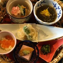 ・籠盛 六種 (煮物 揚物 酢の物 小鉢三種)