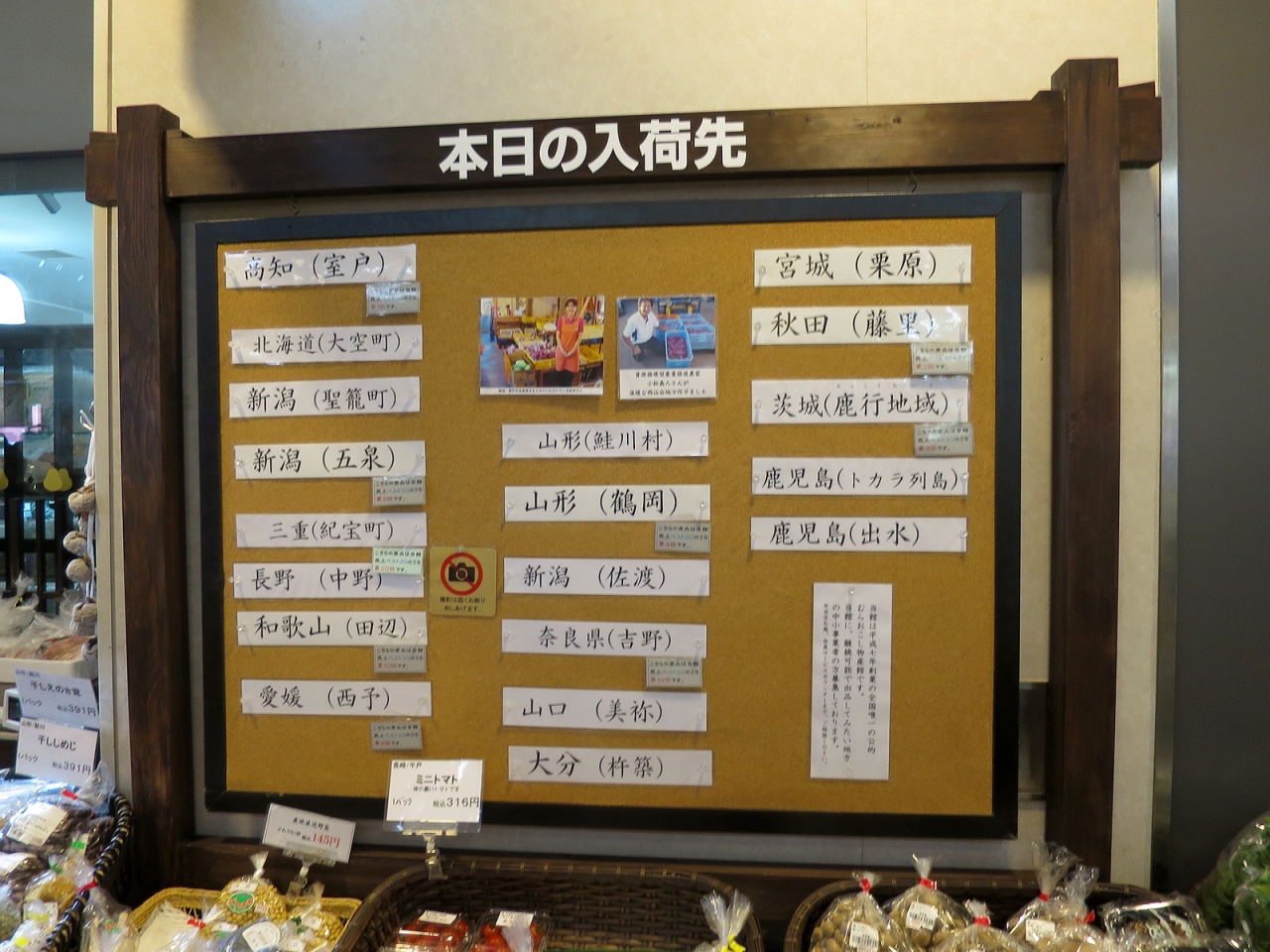 - 各地域の名産・特産品のお店で、新鮮な野菜や海産物など品揃えも多いのですが、商品棚の整理してあって、雑多と言った感じではありません