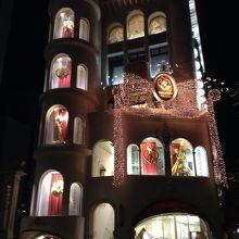 乃木坂の駅すぐ お人形のおうちの様な建物で目立ちます。窓には真っ赤なキャノピー、らせん階段、お城みたいです。ブライダルの総合施設で前を通るだけでも華やかさを感じます。