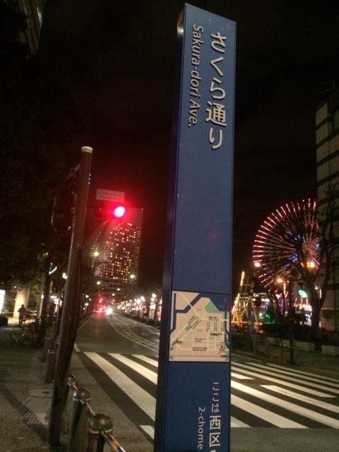 JR「桜木町駅」から「ランドマークタワー」「クィーンズスクエア」の前(南東側)を通り、「日本丸メモリアルパーク」の間を通って「パシフィコ横浜」まで続く道路です。車道の両脇には109本もの桜が植えられていて、桜の時期にはとても美しいソメイヨシノを観ることができます。残念ながら桜の時期ではない年末の訪問でしたが、みなとみらい地区の夜景はとても綺麗でした。