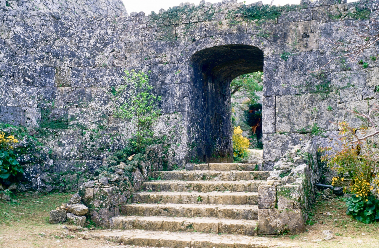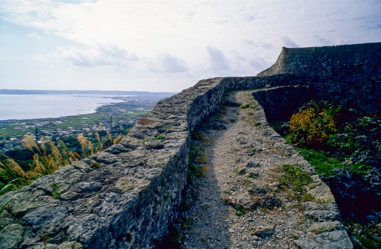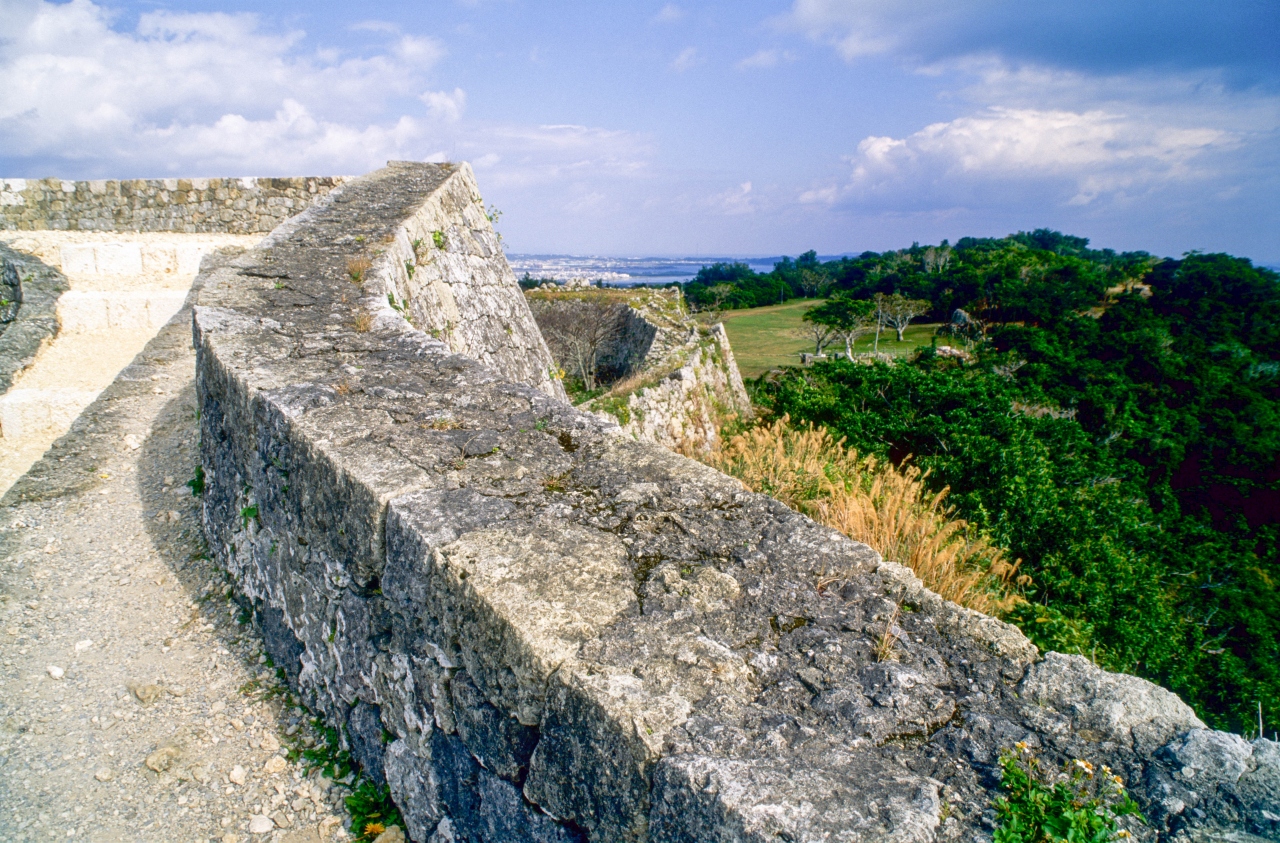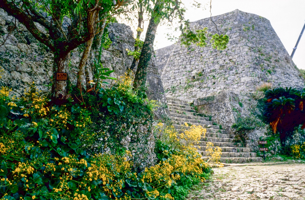 世界遺産に指定された沖縄に残る城跡の中でも大戦による被害もすくなく、最も保存状態がよいそうです。全体にゆるやかなカーブを描く石積みの城壁は土塁、堀などで築かれた本土の城とは異なるものですが、山の地形をいかして郭ごとに区切られた構築は本土の山城にも通じるものを感じます。