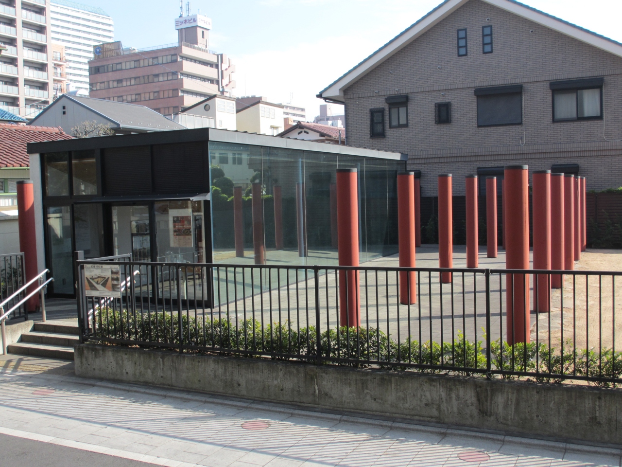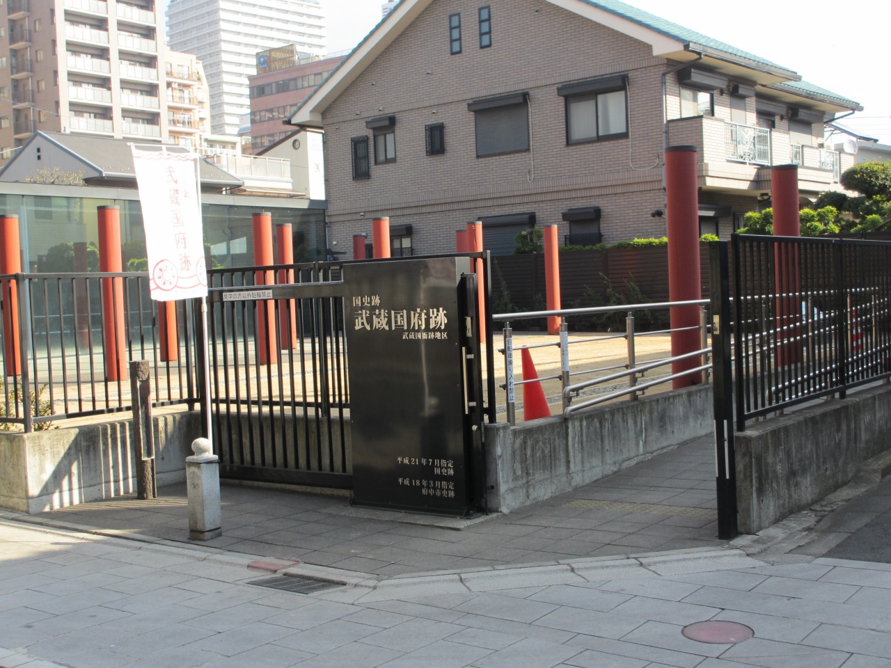 府中駅から徒歩5分の大國魂神社境内にある相撲土俵のそばにあります。奈良時代から平安時代の約400年間武蔵国(現在の東京都、埼玉県、神奈川県の一部)を治めた役所があった所を国府といいます。その中枢の役所群が置かれた所を国衙といいます。この場所と神社に国衙の中枢を構成する建物群が発見されました。朱色の柱はこの建物の柱位置を示します。展示施設内部に発見当時の様子や説明が展示されてます。