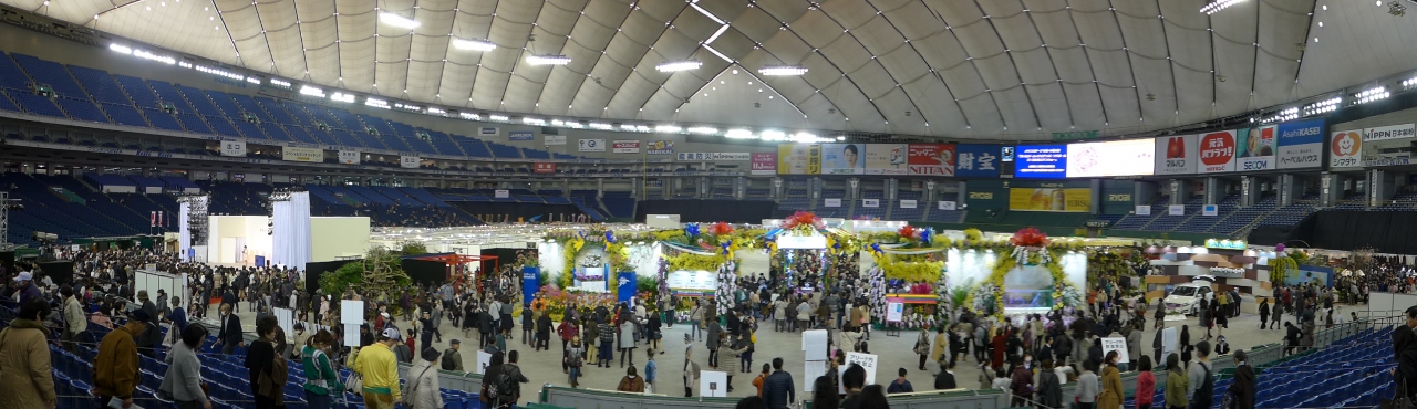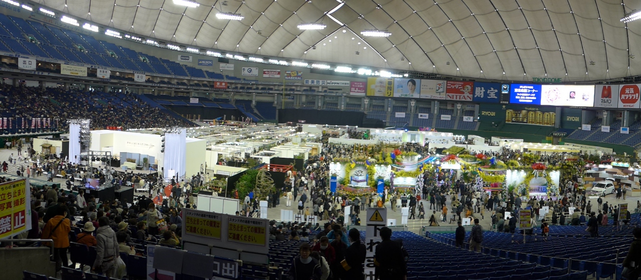 東京ドームのグランドをフルに埋め尽くした蘭の展示と販売所には見学客購入客が