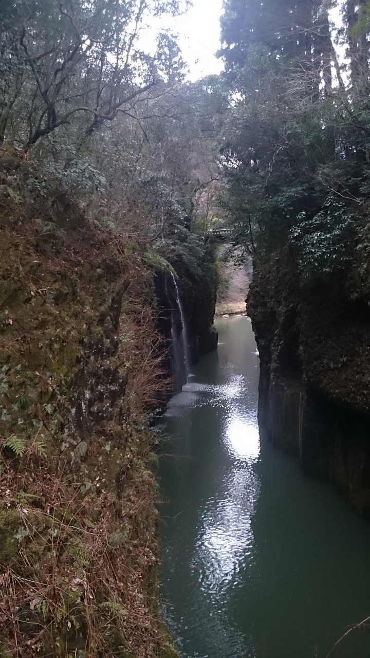 高千穂峡は一部の道路が工事中で川の畔を歩いて下り真名井の滝での昼食となりました。