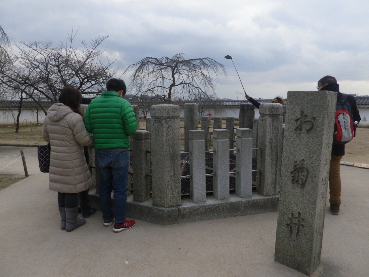 天守閣から下りて備前門・りの門を歩いてぬの門へ向かう途中にある広場にありました、この井戸は古典落語にも登場する番町皿屋敷のヒロインお菊が攻め殺されて投げ込まれたと伝えられる井戸、井戸の上には金網が帰られていて中は暗くてよく見えませんでした。