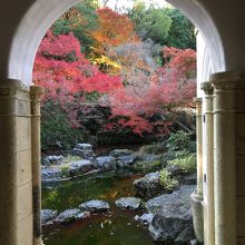 バスを降りて、トンネルを潜っていくと、綺麗な紅葉の道があります。