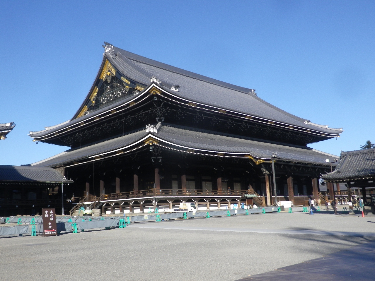 真宗大谷派の本山で広い境内に明治28年(1895年)に再建された世界最大の木造建築の御影堂、明治28年(1895年)に再建され現在修復中の阿弥陀堂、京都三大門の一つで明治44年(1911年)に再建された御影堂門など歴史ある建造物があります、拝観料は無料で休憩ができる総合案内所があります。