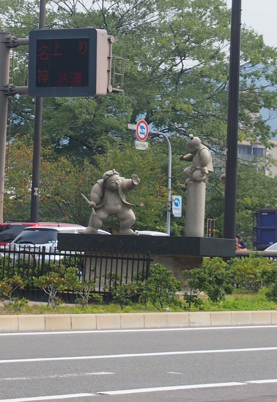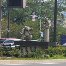 下京区側から五条大橋の手前にある牛若丸と弁慶の有名な逸話のモニュメントです。かわいらしさが先行いたチョット漫画チックなモニュメントですね。観光バスや自動車で通ったら結構一瞬で通り過ぎてしまう感じでした。