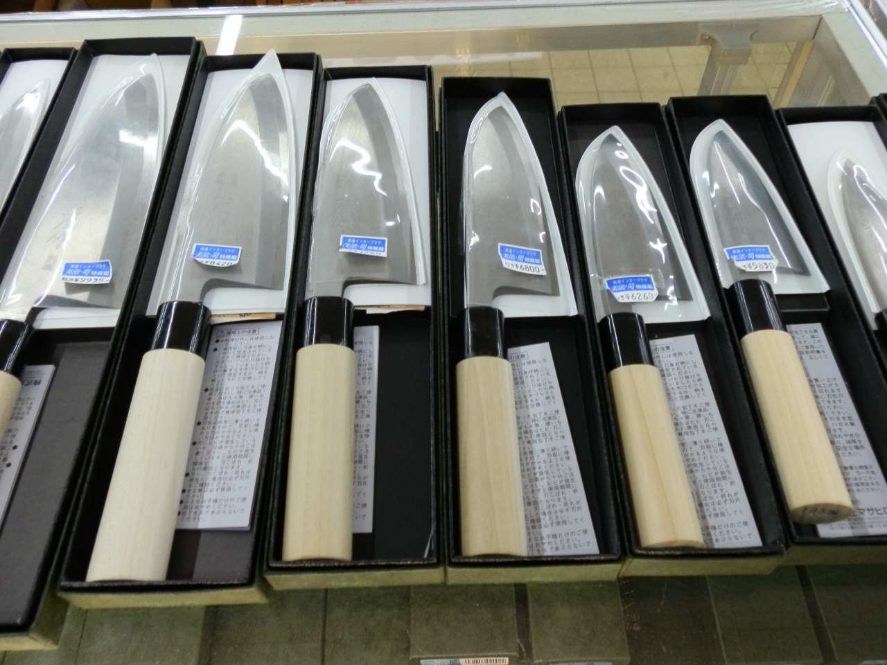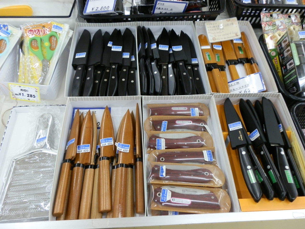 美濃関物産館では包丁はもちろんはさみ、カミソリ、ナイフの切れ物から鉈や鎌そして台所周りの便利な小物類まで多種に亘って刃物類が有りました。また、刃物類はご家庭での消費財であることから、全ての商品でアフターサービスがきくメーカーとのみ取引させて頂いているそうです。