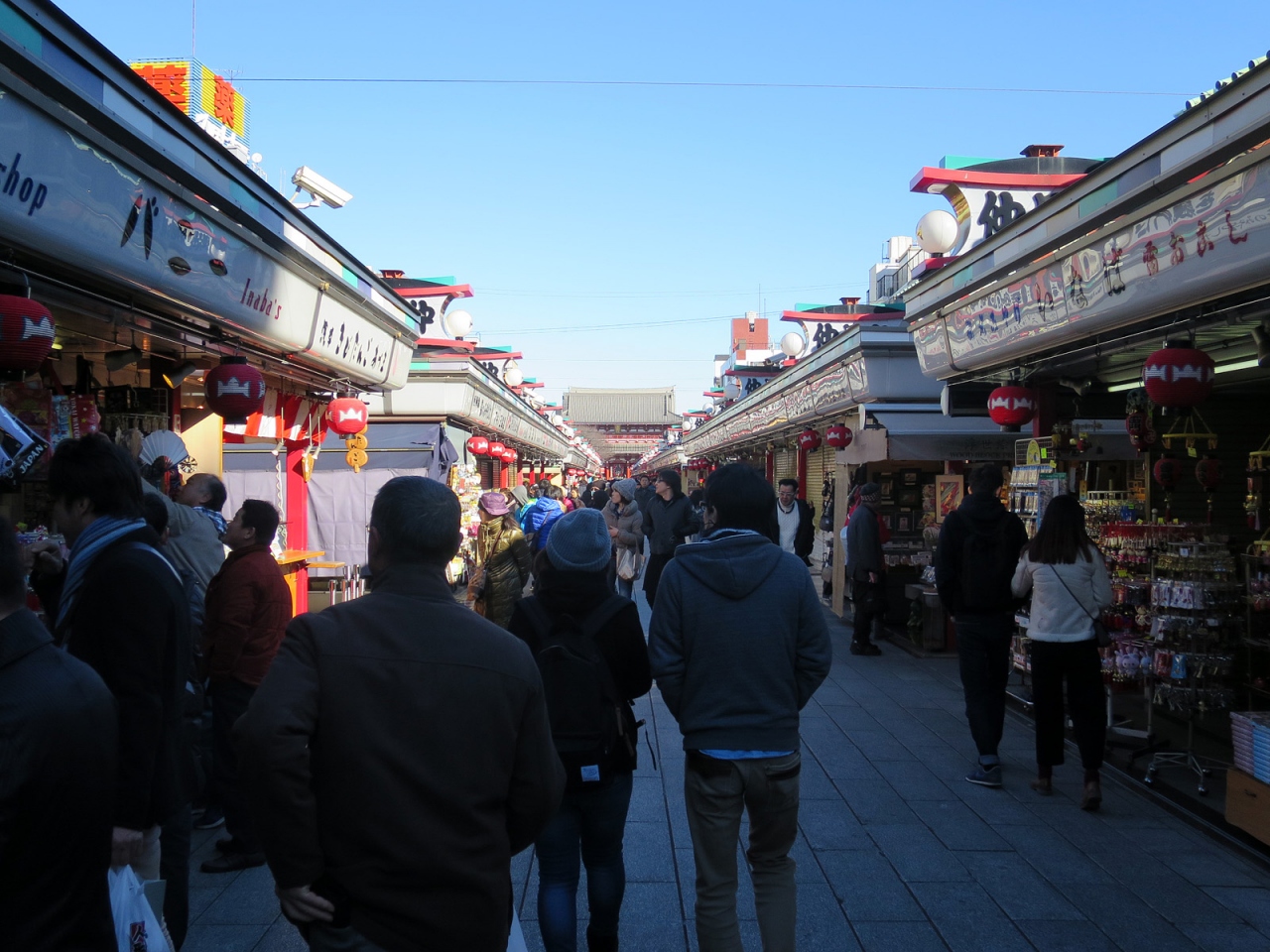 一旦は戦災で焼失したものの、見事に復興した東京を代表する浅草寺参道沿いの商店街です。こんな時代になっても変わらぬ姿に、「日本は大丈夫だ」って安心したりします。昔ながらの人形焼き屋や和装小物店、浮世絵屋と、「東京の土産ならまかせとけっ!」みたいな雰囲気が、仲見世の魅力なんでしょうね。ただ、仲見世と平行に走る筋の方が、現代日本人にとって楽しいかもしれませんね。