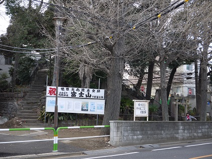 埼京線十条駅から歩いて15分程度の場所に有り住所は北区中十条2−14ー18で十条地域の人達が江戸時代以来、富士信仰に基づく祭儀を行って来た所なんです。神社の手前には富士塚が有り数十基の石造物が建てられ銘文によると天保十一年から富士塚として利用されていたそうです。
