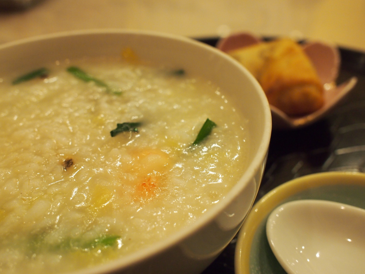 梅蘭といえば、表面カリカリの焼きそばなんですが、ランチセットの物は量が多くて食べ切れる自信がなく、おかゆセットにしちゃいました。