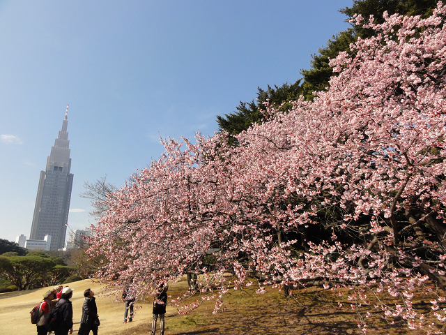 日帰りバスツアーで行きました。大都会のすぐそばにこんなに広い憩いの場があったのですね。私たちは団体でしたが個人で訪れてる外国人観光客も見かけました。早咲きの寒桜、ほとんどが3分咲きでしたが満開の梅もちらほら見られました。花の見ごろは入口で係の方が説明してくれたので、決められた時間内に花探しのゲームをしてる感じになりました。1時間は短すぎて周り切れなかったです。