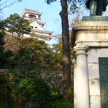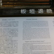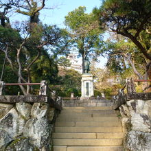 今日は南国の高知にきて高知城を散策しています。「板垣退助銅像」は、高知城の正面玄関とも言える追手門から入って直ぐ左側にあります。現在の銅像は二代目で、1956年に再建されています。階段の上に建っていて背景には素晴らしい高知城が見えます。正面の題字は当時の首相である吉田茂の書とのことです。見どころ多い高知城を散策しましょう。