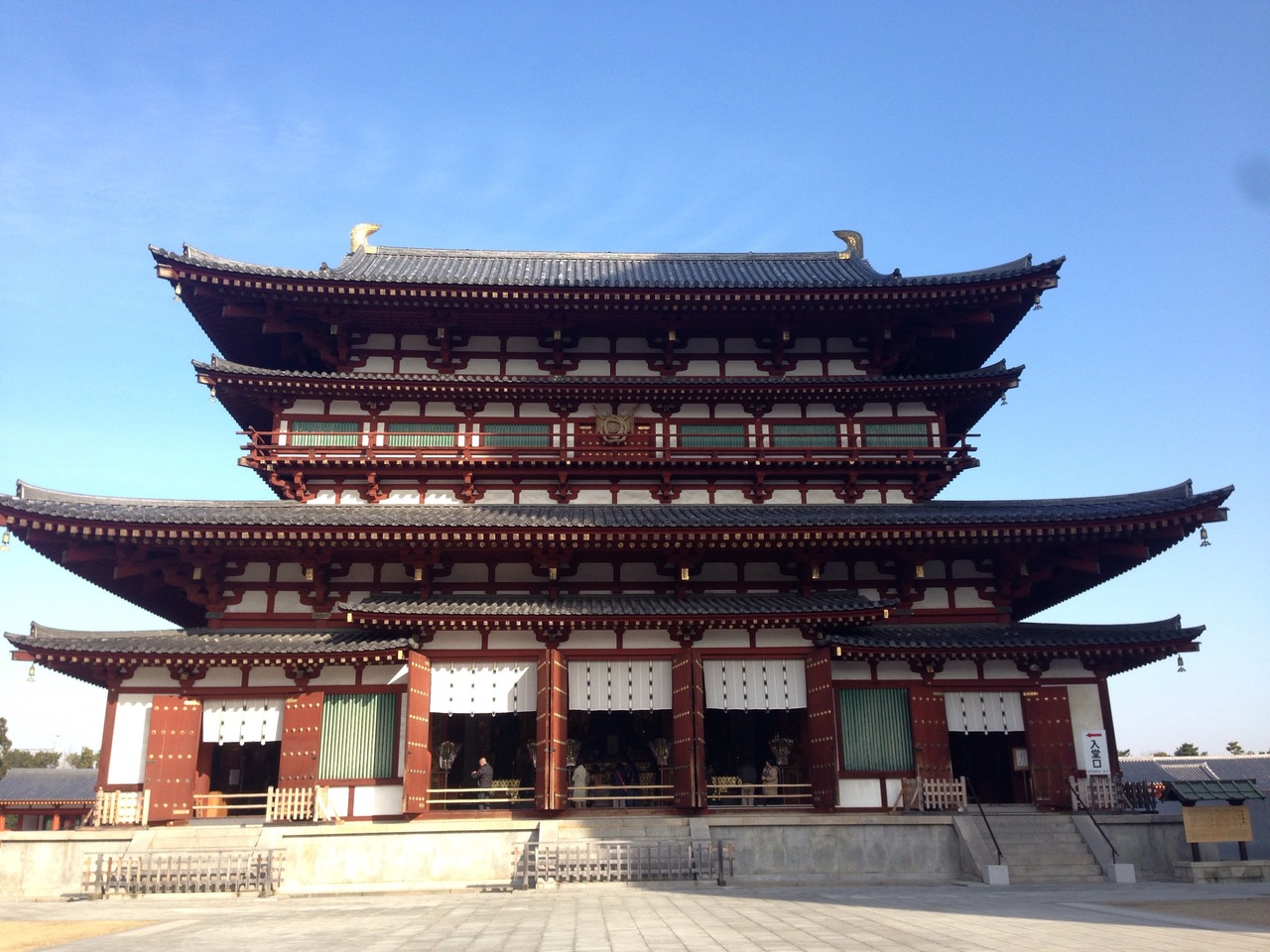 薬師如来像じたいがかなりの大きさなので、こちらの金堂もかなり大きいです。写真に収めようとすると苦労しますが、西の塔と金堂の対比はとても見事です。ぜひよい角度を見つけて思い出の写真をとりましょう。