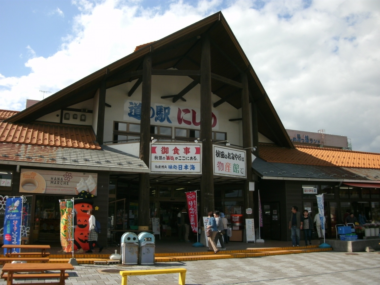 酒田市街から1時間ほど走った国道7号線沿い、24時間営業の入浴宿泊施設“にしめ湯っ娘ランド”がある比較的大きな道の駅です。