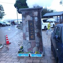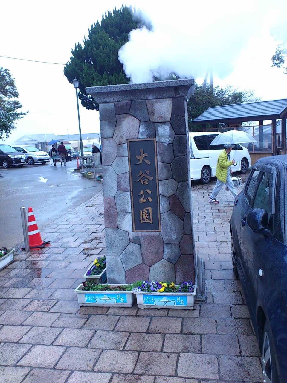 鉄輪バスターミナルから歩いてすぐ、右に登るとみゆき坂、下に下るといでゆ坂の交差点にあります。大谷公園は仏教者の大谷光瑞さんを顕彰した市民公園ですが、地獄蒸し工房裏盧がある場所と言った方が有名だと思います。