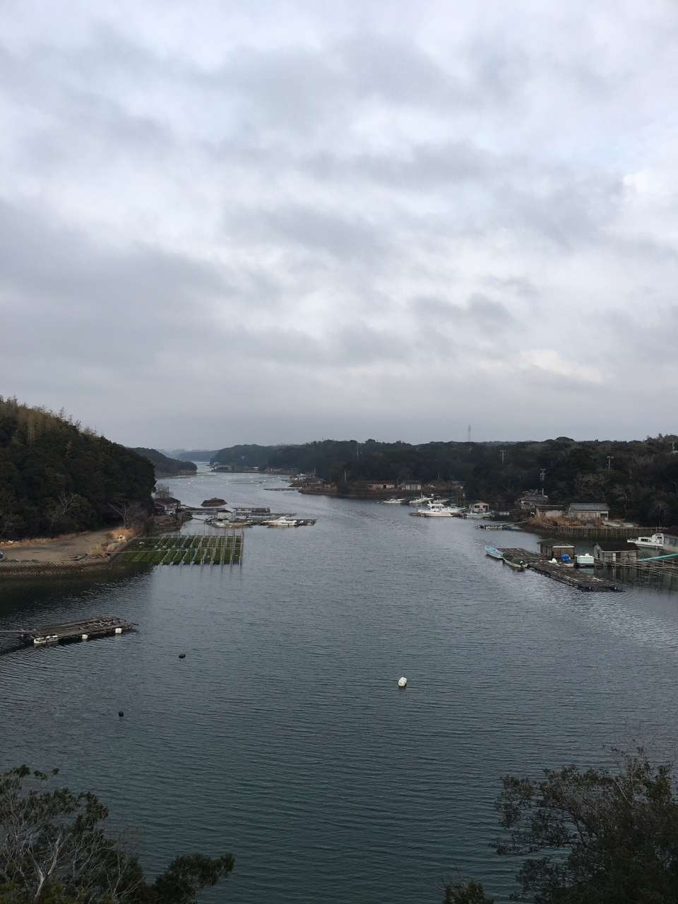 小規模の公園ではありながら、トイレ等も清掃が行き届いており快適に利用できましたし、自動販売機も品切れもなく細かなケアがされています。そして小さな展望台を登り切ると、そこには英虞湾と真珠養殖の筏が広がるなんともいえない景色を堪能することができます。