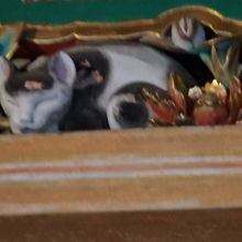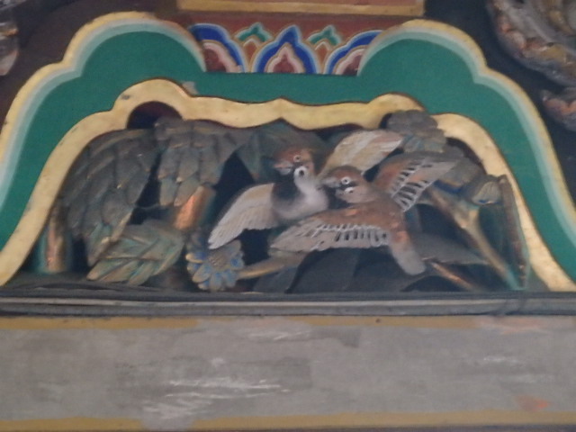 後ろに食べられる対象の雀がいるということは平和の象徴を表しているそうです。