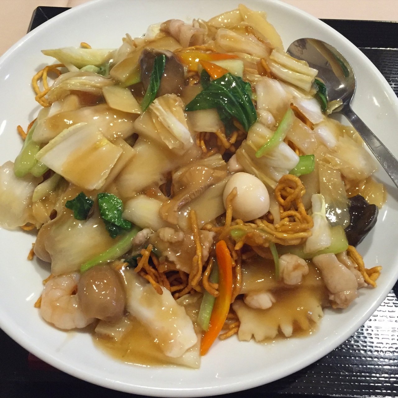 海老やイカなどの海鮮と豚肉で、豪華な五目あんかけです。