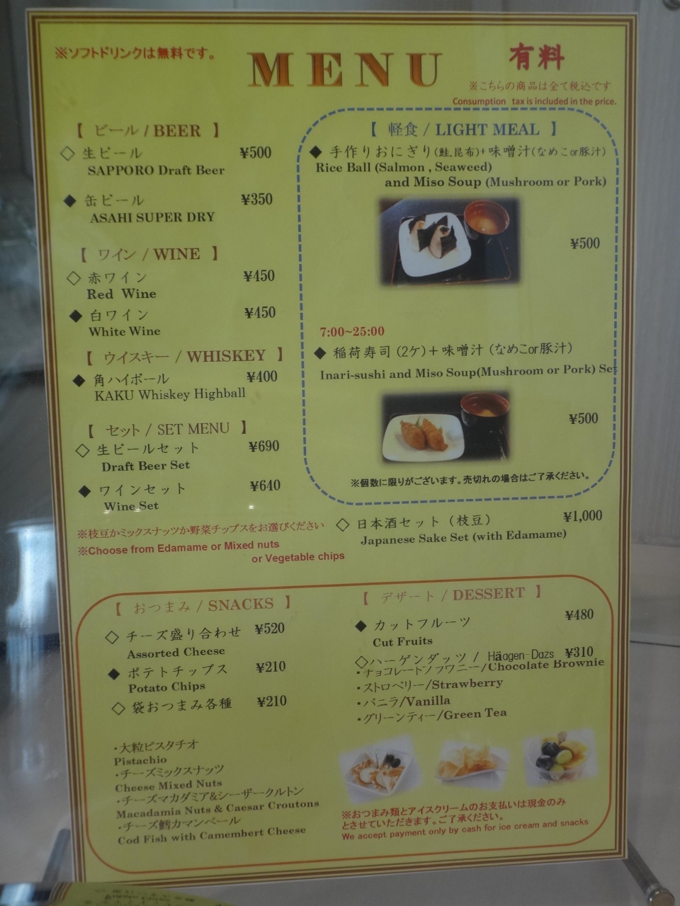 ソフトドリンクは無料ですが、無料のフードサービスはありません。