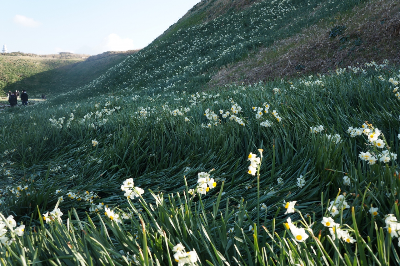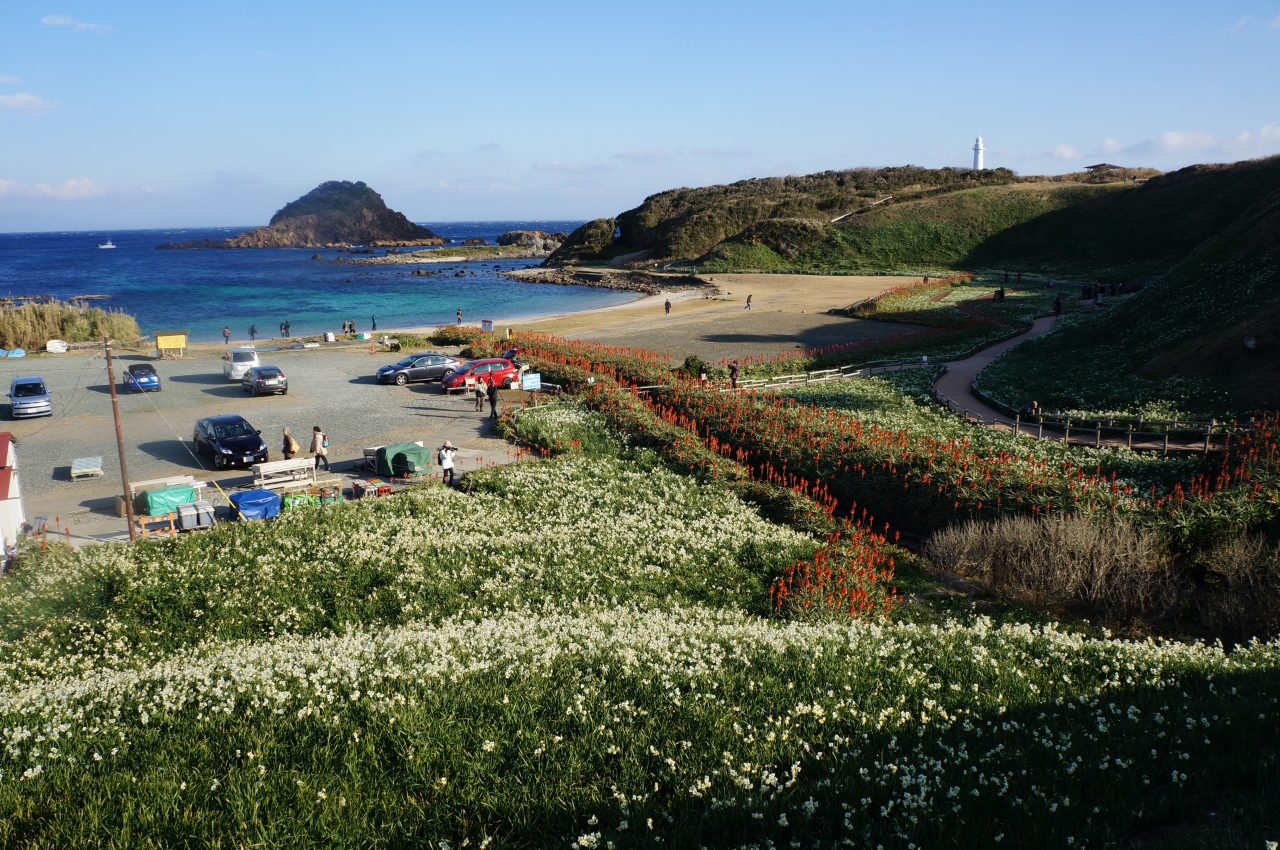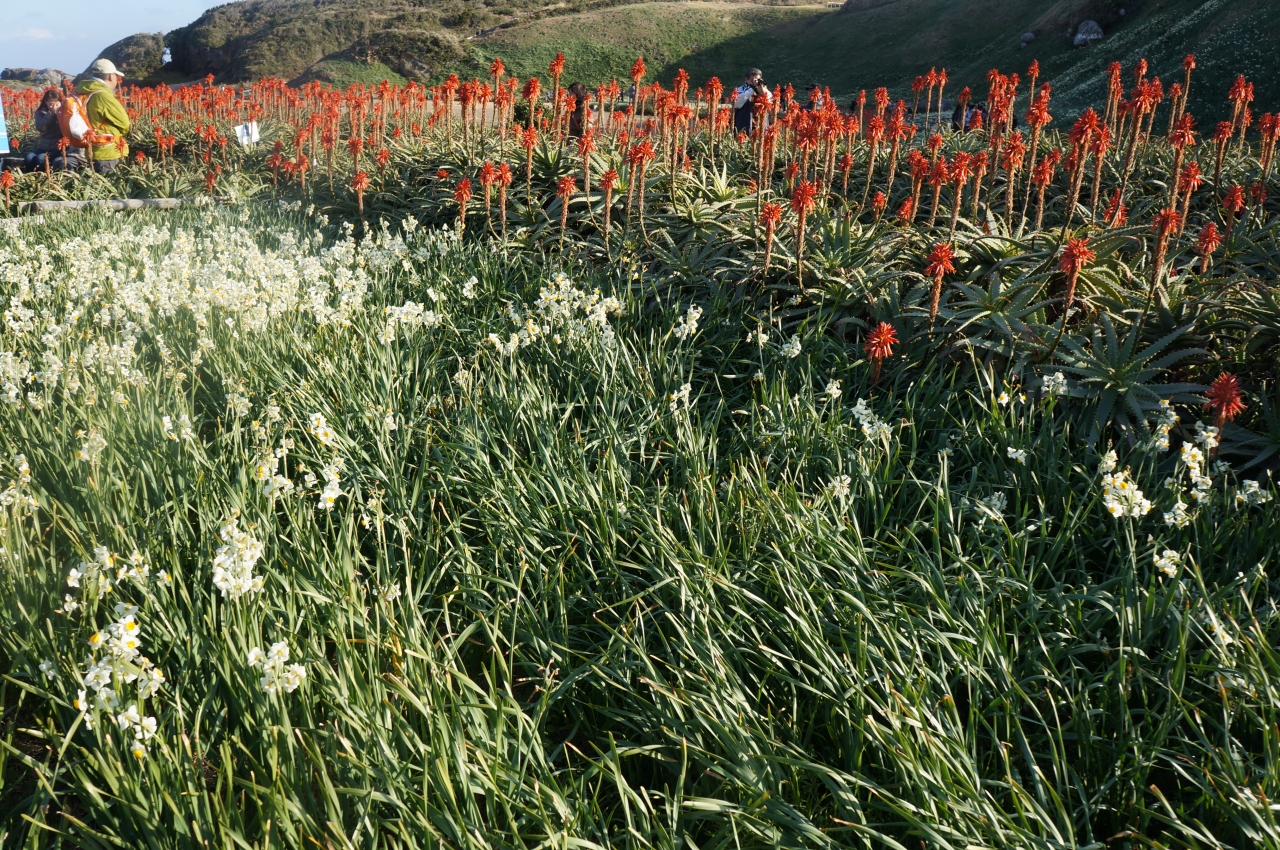伊豆半島の先端から小さく東へ突き出た須崎半島。その半島のさらに最東端に爪木崎という岬があり、ここに水仙の群生地があります。約300万本の水仙が1月から2月にかけて咲きます。毎年最盛期には静岡県で必ず1回はニュースで流れるのですが時期が限られている為、なかなかチャンスなかったのですが行って来ました。群生する水仙や真っ赤なアロエの花が美しかったです。ただし写真で見ると穏やかな風景なのですが、凄い風でした。