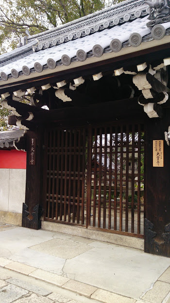 上宮学園の前身である、浄土宗教校大阪支校発祥の地です。大坂夏の陣によって焼け野原となった大阪の復興計画により、この地に移転してきたものであり、近年においては大阪大空襲の際には難を逃れた寺院の一つ。地蔵堂、観音堂は享保年間に建った、歴史のある建物です。大阪有数の寺町である生玉エリアの一画にあり、道を歩いていると外壁に赤い帯状のプレートに様なものが貼られているのですぐにわかります。但し、何を意味しているのかは分かりませんでした。