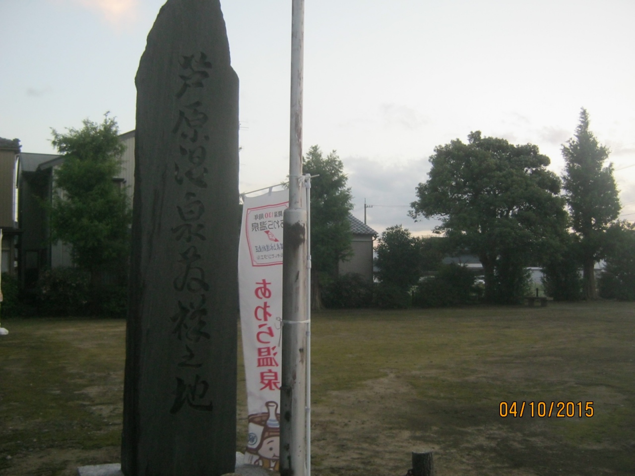 あわら湯のまち駅から西のほうにあります。公園になっています。表示板があります。公園の一角に湯元と表示された井戸のようなものがあります。屋根のようなふたがしてあります。また地蔵尊の小さな祠もあります。明治16年に温泉がここからみつかったのでしょう。