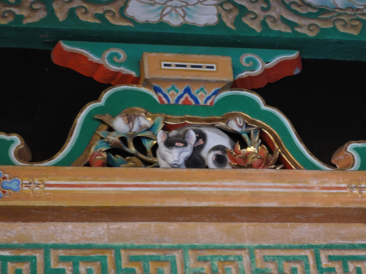 有名な眠り猫、人だかりになって騒々しいけれど、決して起してはいけないのです。