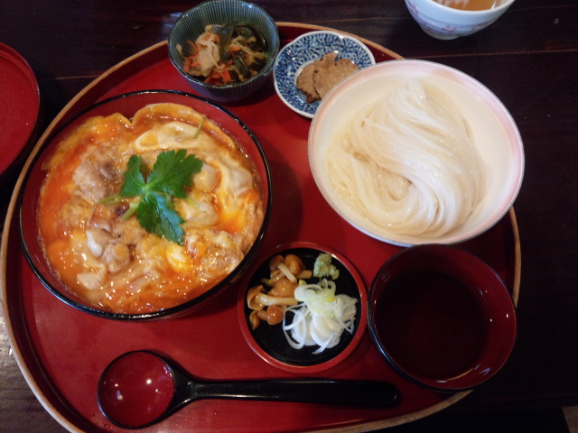 稲庭うどん比内地鶏親子丼セット を注文 愛妻は、あったかいうどん、私は、冷たい醤油だれを注文 待つこと10分ぐらい、冷たいうどんを一口、美味、こしの強さ、つけだれの味 ペロリと完食 親子丼を一口、美味、トローリとしたたまご、弾力のある鶏肉 もう一丼追加、ペロリと完食 ぜひ、またよらせていただきます。
