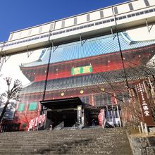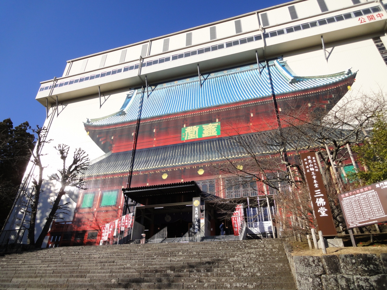 本堂全体が素屋根ですっぽり覆われており、素屋根の外壁部分に実物大の本堂が描かれていました。随分きれいだと思ったら、「絵」でした・・・