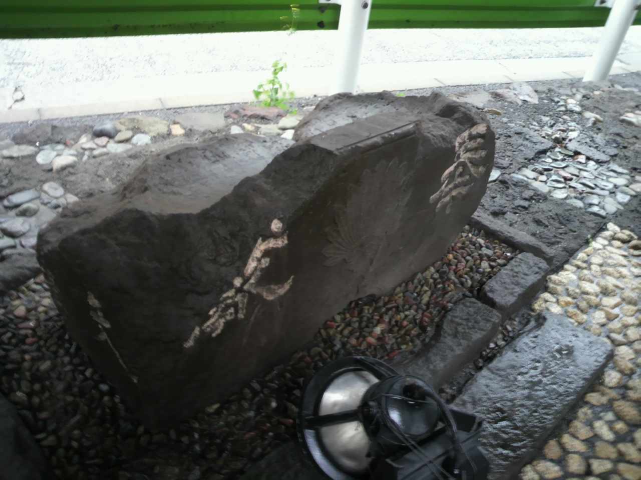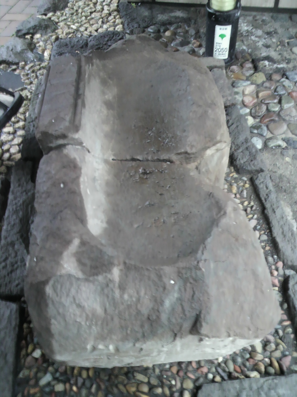 手水鉢は、一部が損傷しており、完全な姿ではありませんが、龍野藩(兵庫県)脇坂家上屋敷内の祠の参道跡から出土したとの解説があります。