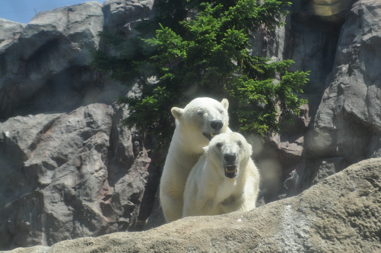 大きな施設で2ヶ所でホッキョクグマが見られます。今回の訪問ではプール側にいたホッキョクグマが発情期を迎えていたらしく、交わっておられました(ほんと邪魔してすいません)。来年には子供が見られるかも?というような内容のアナウンスもありました。また、「シールズアイ」という強化ガラス?で出来た透明のカプセルがホッキョクグマの飼育場に埋め込まれており、タイミングさえ合えば中から間近にホッキョクグマを見る事ができるようです。残念ながら私が覗き込んだ時には近くにホッキョクグマがおらず、景色しか見えませんでしたが。