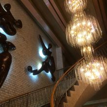 道頓堀から入ってすぐのかなりかっこいい純喫茶です。店内に入って目に飛び込んでくるのは螺旋階段とシャンデリア。そして店内も昭和テキストのレトロモダンな雰囲気です。メニューは喫茶店らしいピラフやイタリアンスパゲディ、オムライスなど。こちらはホットケーキが有名です。