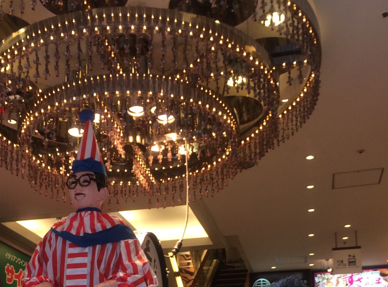 道頓堀で撮影するのはグリコとこちらくいだおれ太郎。昔はレストランがありましたが、今は太郎さんだけが看板男として立って太鼓をたたいています。行列にきちんと並べば記念撮影もできます。大阪に来たらこの顔は見ないと。