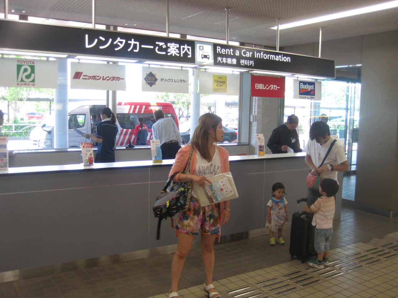到着口の脇にレンタカーのカウンターがあり、そこで予約票を見せると送迎車がやってきて、営業所まで運ばれます。