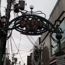 屋根のない商店街で、飲食店や和菓子店等がありました。