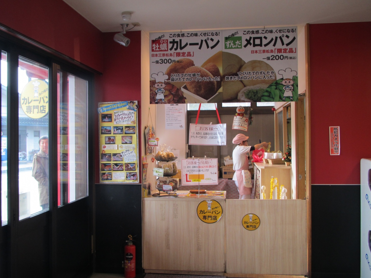 カレーパンとメロンパンのお店です。揚げたての牡蠣カレーパンを食べました。中には宮城県産の牡蠣が入っていてます。とてもおいしかったです。一個300円くらいしますが、その価値はあると思います。メロンパンはずんだが入っているそうです。これもおいしそうでした。