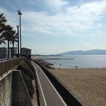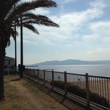 晴れた穏やかな日の駐車場からの海岸沿いの風景は、南国的な雰囲気を感じた。