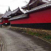 別名で赤壁寺と呼ばれているようにお寺の壁は真っ赤に塗られていて、異様な雰囲気です。中津駅から寺町を通って、福沢諭吉の生家に行く途中にあります。豊臣秀吉の九州征伐ののち、黒田官兵衛がこの地の領主として赴任し、前領主の宇都宮鎮房を謀殺した時に部下たちはこのお寺で殺されたそうです。その時の血の跡を何度も塗っても血が滲み出てくることから、真っ赤に塗ったというのが名前の由来でそうです。