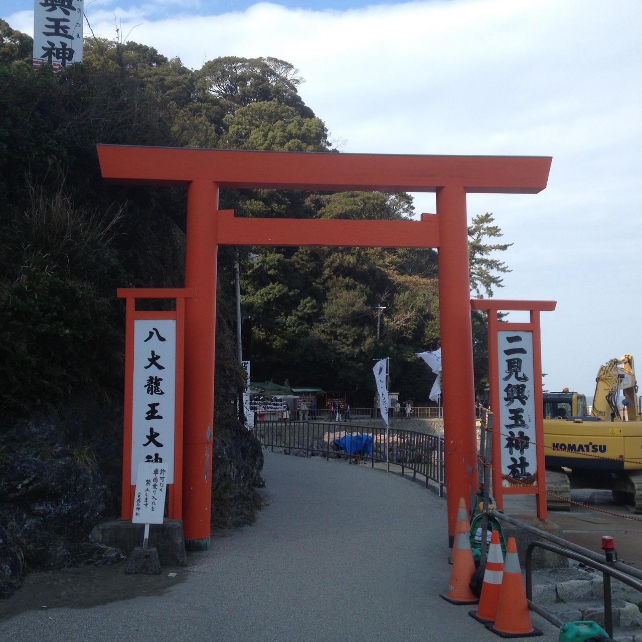 二見浦エリアの中心海に面した場所にある神社です。海沿いで面積が取れないので大きな社殿がある訳ではありませんが風光明美で良い雰囲気です。縁結びの神様という事でカップル、夫婦が本殿で祈祷されていました。