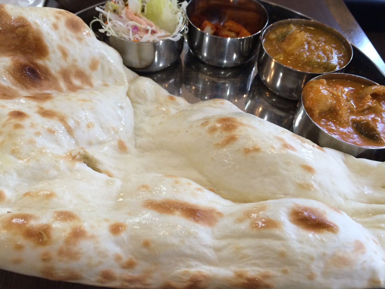 カレー2種類を選べる「レギュラーミールス」をいただきましたが、スパイスが効いていて美味でした。ナンもお皿からハミ出る大きさで、焼きたてを提供してくれます。