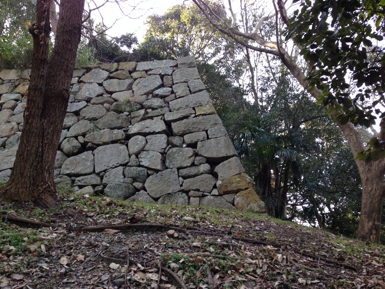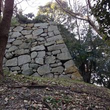 本丸の北側は、谷の様な地形で、その斜面には高石垣が築かれ、底には堀が設けられてる。