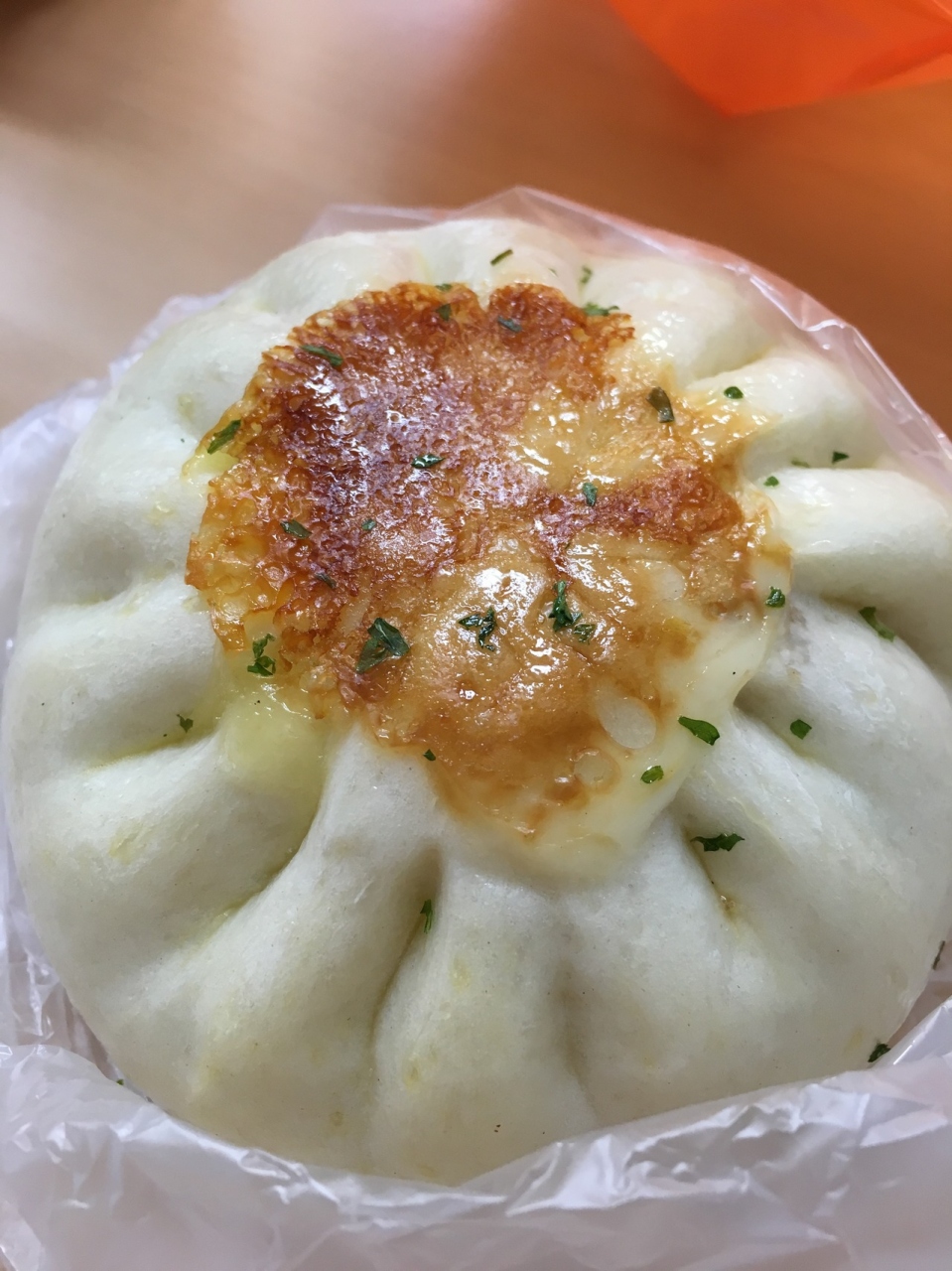 肉まんのような雰囲気のフランス風ピロシキ。お肉がたっぷりでおかずっぽいパンです