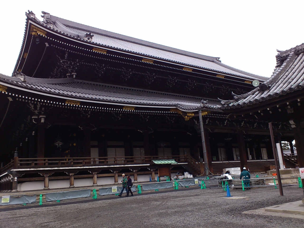 東本願寺の御影堂は、面積においては世界最大の木造建築だそうです。西本願寺が竣工当時の建物が多く残っているのに対し、東本願寺は4度も焼けてしまい、最後は幕末の禁門の変の大火によりほとんど焼失した後に再建されたものだそうです。
