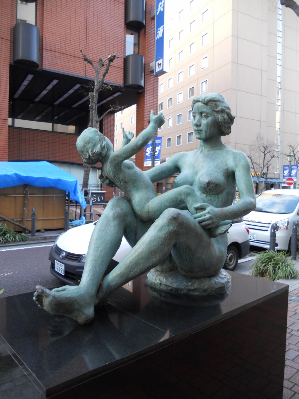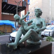 歩道に設置されていた、有名史跡等を掲載したマップを見て「アイスクリーム発祥の地」というのを探したら、「太陽の母子像」が。