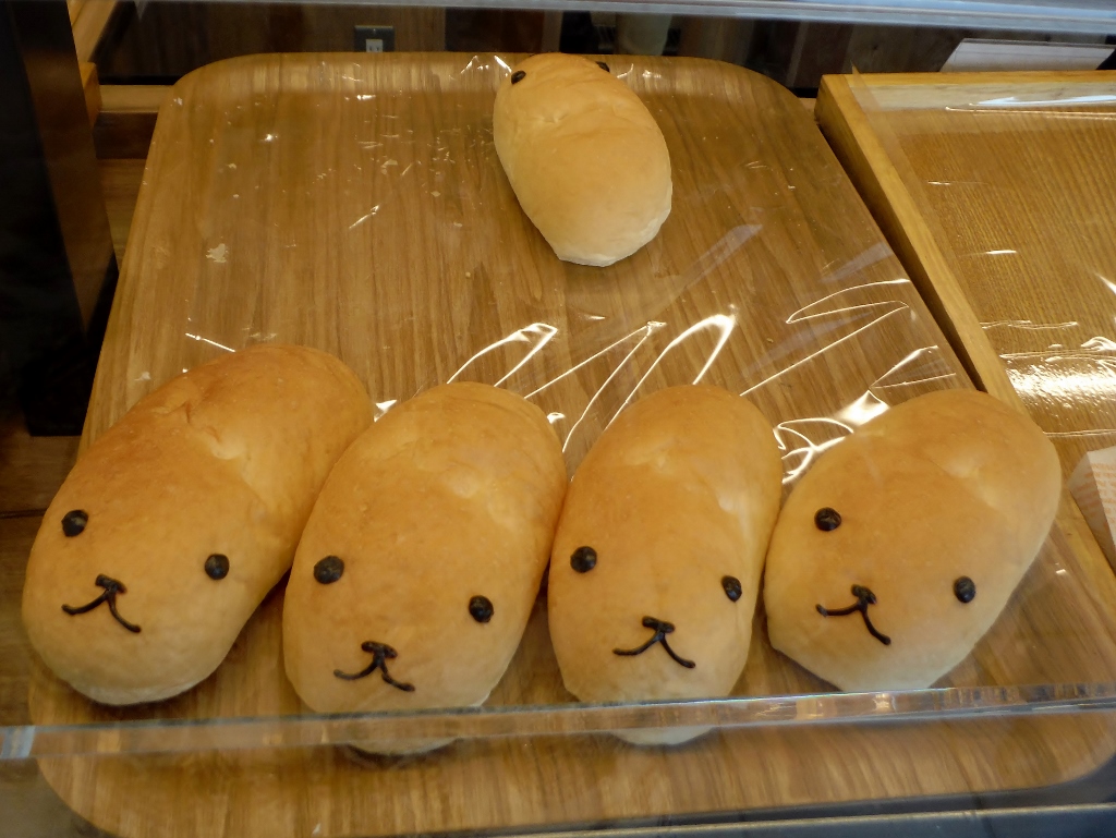 普通のパン屋かと思ったらバンダイキャラクターカフェでした。パンも売っていますが、グッズ販売も。お店の前にカピパラのヌイグルを両脇にして写真を撮れるコーナーも。おすすめはカピパラさんのカフェラテ。カピパラさんのアートをしてくれますので写真映えがいいです。ネタにはなります。