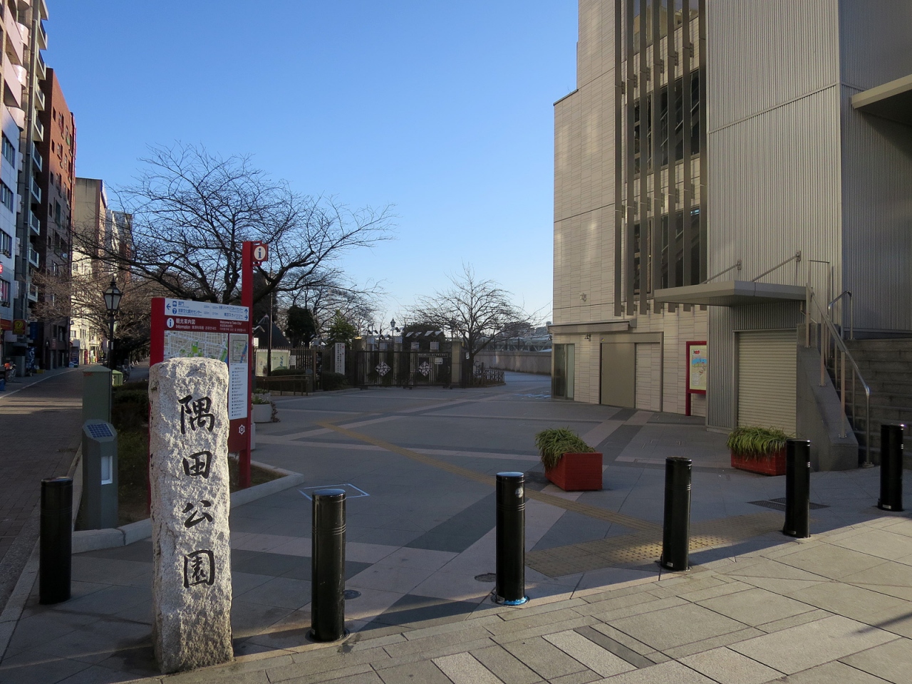 桜並木で有名な隅田川沿い、台東区にある浅草側から「吾妻橋」を渡る手前に、「隅田公園」という隅田川沿いに伸びた公園がありますが、「吾妻橋」を渡りきった墨田区側にも同じく「隅田公園」があります。区をまたいでいるにも関わらず、同じ名前の公園があるということから都立公園かなと思いましたが、元は関東大震災を契機にして防災緑地・災害時避難所といった用途をもって整備された帝都復興公園の1つだったようで、現在は隅田・台東両区で管理されているそうです。公園内には多くの見所があるようでしたが、今回はあまり時間もなく、ほんの一部を見学してきました。暖かい春になったら、もっと範囲を広げて再挑戦です。